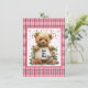 Send heartfelt Valentine’s Day wishes with this adorable and fully customizable card featuring a sweet teddy bear holding a sign that says "Love You More," surrounded by soft pink roses and a charming heart pattern. The card’s back includes space for your personalized message or poem, perfect for expressing your love in a unique and meaningful way. The pink plaid border adds a touch of whimsy and elegance. Ideal for couples, friends, or anyone you hold dear. Customize the text, poem, and name to make it uniquely yours!