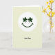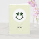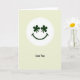 This card features a pale yellow-green background with a white circle centered like a little badge floating on the page. Inside the circle, a simple smiling face is drawn in dark green lines, and the eyes are replaced by two matching four-leaf clovers ☘️. The clover “gaze” gives the face a sweet, affectionate look, like it’s smiling at someone it cares about without needing anything else in the scene. Beneath the circle, the words “Love You” sit centered in a dark green, straightforward font that matches the face lines 💚. The roomy spacing around the emblem keeps everything calm and uncluttered, letting the clover eyes feel like a small shared secret between close friends or partners. The contrast between the soft background and the crisp dark green details makes the circle and message easy to notice at a glance. The final image is a centered white disc on a pale yellow-green field, with dark green clover eyes and “Love You” printed directly below.
