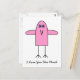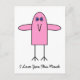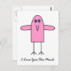 I Love You This Much. Postcard. Cute comical image of pink bird with wings outstretched. Simple minimalist style toon character. Fully customizable. Text reads: ' I Love You This Much'.
