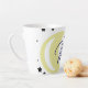 Crescent moon and black stars "Love you to the Moon and back" custom latte mug.