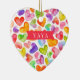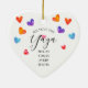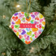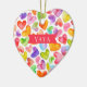 Yaya Christmas ornament design featuring a field of colourful watercolor hearts. The back of our ornament can be personalized with grandchildren names.