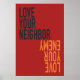 This poster promotes the teaching of Jesus about the upside-down Kingdom, here and now, where we are to love our enemies just as we would love our neighbours.