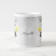 Profitez de votre café matinal en quantité de masse avec une Mug Jumbo Personnalisée Gold Lovebirds. Le design de la moquette comprend une paire d'oiseaux de l'amour ornée d'une vigne fleurie et d'une zone que vous pouvez personnaliser avec votre nom. Offres supplémentaires disponibles avec ce design ainsi qu'une variété de couleurs.