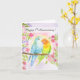 This hand-painted watercolor and pen illustration features lovebirds perched on a branch, surrounded by soft pink and purple flowers against a romantic pink sunset. Designed as a 1st wedding anniversary card, this artwork captures love, togetherness, and lasting commitment.