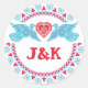 Love birds sticker or envelope seal with a Mexican or Southwestern flair. This design is part of my papel picado-style "Lovebirds" invitation design set. You type your own initials (or message) in the centre, and choose your own font and font colour. Just contact me if you would like this label in a different colour.