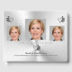 My sympathy to you for your loss. This Condolence Book will grace any funeral or remembrance service, allowing guests to leave their messages of sympathy and happy memories. The design uses an embossed-effect stylized heart and roses in mourning colours on a background using a polished-silver effect. Upload 3 photos of your loved one for the front and put in their name. There's room for a website of treasured memories, if you have one. If not, simply blank it out.