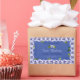 Make a lasting impression with this modern and elegant product label design featuring a pretty frame with blue roses and green rose leaves on a medium blue background.
