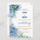 A flowery invitation of lovely dusty blue flora arranged in an elegant and chic way,