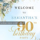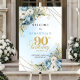 Celebrate a remarkable milestone with this elegant 90th birthday welcome sign featuring watercolor dusty blue and white flowers, soft eucalyptus greenery, and a delicate gold frame. Perfect for a boho, rustic, or classic celebration, this floral poster creates a warm, sophisticated entrance and sets the tone for a memorable birthday party.