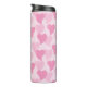 Hearts pattern thermal tumbler. Presented in shades of pink.