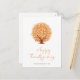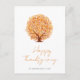 simple script lettering happy thanksgiving holiday card with fall tree leaves. The text and back colour can be personalized.