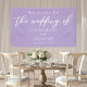 This lovely lilac wedding banner features beautiful white typography on a soft purple background for a spring afternoon ceremony. Lavender pastel decor is a delicate colour choice for an elegant garden occasion.