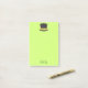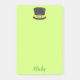 A lime green set of post it notes, this design is just sheet, this design features a lime green background with a black hat using a St. Patrick's Day theme, underneath is a place to insert your name.