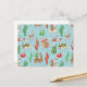 Lovely Llamas Christmas Light Teal Pattern Postcard
