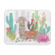 A soft, watercolor with a llama lounging among cacti. Artist: Mary Urban