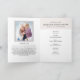 A beautifully appointed headline accompanies a favourite photo on this celebration of life program. Easy to customize for your loved one's memorial. Includes space for an obituary, service program and memorial details or message from the family. Background colours can be changed as needed.