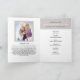 A beautifully appointed headline accompanies a favourite photo on this celebration of life program. Easy to customize for your loved one's memorial. Includes space for an obituary, service program and memorial details or message from the family. Background colours can be changed as needed.
