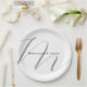 Lovely Monogrammed Black White Grey Calligraphy Paper Plate