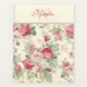 Beautiful old fashioned pink and red roses and greenery decorate the front of this planner. The top section has a pale yellow background which is separated by a lovely string of pearls. Personalize the top with your name and initial.