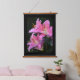 Decorate your living space with this vertical, hanging wall tapestry with wooden tops that features a photographic image of big, pink Oriental Lily blooms framed with a black border. A lovely, floral design!