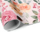 Lovely, feminine wrapping paper has watercolor pink raspberry and orange sherbert coloured roses and tan daisies with moss green botanicals. Perfect for birthdays, weddings, or any kind of occasion.