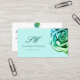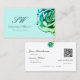 Lovely Rose on Plain Teal White Initials QR Code Business Card