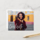 graduation announcement and invitation, modern custom photo of the grad with white calligraphy script lettering text. Feel free to change the image and thank you message at the back.