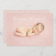 Affordable custom printed baby birth announcement photo cards. This stylish minimalist design features elegant typography overlaid on your full bleed newborn photo. Personalize it with baby's name and birth stats or other custom text. Reverse side features a chic geometric diamond pattern. Use the design tools to choose any background colour, edit the text fonts and colours, add more photos and create a unique one of a kind baby birth announcement for your new baby girl.