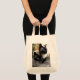 The printing came out very well, better than I had anticipated. The natural color fabric is sturdy with strong seams and comfortable handles. This tote fits easily over my shoulder. As it is filled, the bottom flattens out--very cool! I would buy this product again. This grocery tote holds a lot of groceries! The image quality was very good. The colors were a little darker than I had expected. The darkness may have been due to printing on a natural color fabric rather than on white. The cat design is attractively centered on the tote. The spirit of the design is very lively, just as it appears on the Zazzle website.