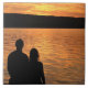This fine art photography ceramic tile features two lovers in silhouette enjoying the sunset at Cayuga Lake in Ithaca, NY. This is one of the Finger Lakes of upstate New York. Beautiful orange, yellow and gold colours the waves and ripples in an abstract pattern.