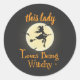 This lady loves being witchy in orange mixed font can be personalized with your name. The silhouette of a witch in a skirt and high heels with long flowing hair and a witch's hat, riding on a broom, illuminated by moonlight with bats flying around. Set on a solid black background.