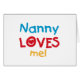 Nanny Loves Me T-shirts, cards, stickers, bodysuits bags, and more with colourful red, yellow, and blue text and heart design. These Nanny Loves me apparel and gift items will make nanny smile!