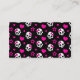 Ribboned skulls surrounded by hearts & stars in a vivid pink against a black background.
