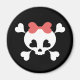 Girl's skull and crossbones pirate flag emblem with heart bones, eyes, nose and pink bow. T-shirts, hoodies, cards, gifts.