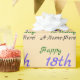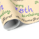 This loving birthday wrapping paper design features a message like "Happy 18th birthday, A-Name-Here!", where the name and birthday number can be personalized. The background is coloured beige. Wrapping paper like this might be used to wrap gifts being given to somebody who is celebrating a birthday. [~Z0000243]