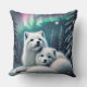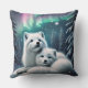 Loving Arctic Foxes Northern Lights Snowy Forest Throw Pillow