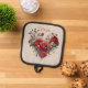 The design printed well on the oven mitt and pot holder, keeping its bold red color. It made a great gift.