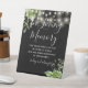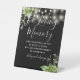 Loving Memory Black Greenery String Lights Wedding Pedestal Sign