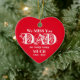Loving Memory Miss You Dad Red & White Christmas Ceramic Ornament. Elegant Red Porcelain Christmas Memorial Heart Ornament In Loving Memory Of Dad Personalized, with elegant decorative white Lettering. Click personalize this template to customize it with all your own family names and date quickly and easily. All text can be customized on the front and the back of the Loving Memory Miss You Dad Red & White Christmas Ceramic Ornament . Beautiful Keepsake Christmas Memorial Ornament for a Dad that is dearly missed! 30 Day Money Back Guarantee. Ships Worldwide fast.
