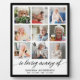 Modern memorial photo collage plaque features 9 photos , typography script ''loving memory'', name and date. Modern photo plaque is an excellent way to remember a loved one. Perfect memorial, tribute to a loved one who has passed away.