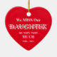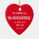 In Loving Memory Personalized DAUGHTER Christmas Ceramic Ornament. Cute Red Porcelain Christmas Memorial Heart Ornament In Loving Memory Of a daughter personalized, with elegant decorative white lettering. Click personalize this template to personalize it quickly and easily. All text can be customized on the front and the back of the Memorial Ornament. Elegant Keepsake Christmas Memorial Ornament for a daughter that is dearly missed! 30 Day Money Back Guarantee.