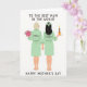 This card shows two women viewed from behind, standing close with their arms around each other and their fingers gently linked, a quiet closeness that reads like family love with a romantic tenderness. They wear matching mint-green robes and stand barefoot on a plain white background, keeping the focus on their shared embrace ❤️. The woman on the left holds a full bouquet of pink roses, the petals adding a sweet, affectionate contrast against the cool green fabric. The woman on the right lifts a slim candle in a small warm-coloured holder, its tiny flame suggesting a soft, celebratory glow. Near the upper portion, a short dedication appears in a casual hand-drawn font in a dark ink, centred above the figures. A second line of text sits near the bottom in a similar style and colour, anchoring the occasion without crowding the scene 🌼. Small labels appear on the backs of the robes, and the roses and candle stand out crisply against the wide white space.