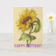 This loving, floral-themed birthday card design features the message "HAPPY BIRTHDAY!", along with a classic vintage style depiction of a sunflower plant. The inside features an editable birthday greeting message. A card like this might be used to send birthday wishes to somebody who is celebrating their birthday.
