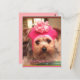 Have fun personalizing this adorable Yorkie puppy wearing a pink hat postcard with your own caption Edit with your own font choice and colour when you customize.