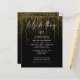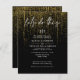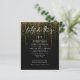 Affordable Wedding invitations don't have to be boring - Bold edgy gold sparkly garland cascades down the page, in handwritten calligraphy is "let's do this" - couple's initials at the top - the rest of the text is simple and clean - all on a black background. Elegant wedding stationery.