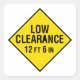 A yellow low clearance road sign. This design looks really effective on these Stickers