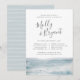 Our elegant summer wedding rehearsal dinner invitations feature classic nautical styling with a clean, minimalist look. Design features a watercolor wash along the bottom in pale grey blue, with your ceremony rehearsal and dinner details in a chic combo of block, italic and hand lettered script typography. Perfect for nautical or summer rehearsal dinners. Invitations reverse to hand drawn wavy stripes in tone on tone icy blue-green.