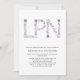LPN graduation celebration invitation with purple floral letters. Simple and beautiful! See entire collection above for thank you notes, stickers, etc.