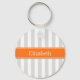 Lt Grey White Stripe Pumpkin Orange Name Monogram Keychain