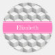 Lt Grey Wht 3D Look Cube HotPink #2 Name Monogram Classic Round Sticker